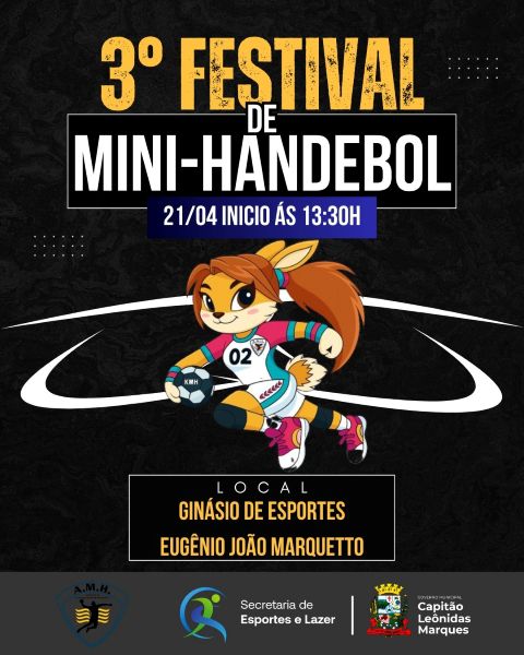 A comunidade de Capitão Leônidas Marques se prepara para mais um importante evento esportivo voltado às crianças e ao incentivo ao esporte. No feriado de terça-feira dia 21 de abril, será realizado o 3º Festival de Mini-Handebol, reunindo muita energia, aprendizado e diversão para a garotada do município.