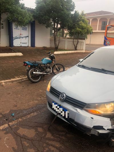 A ocorrência envolveu uma colisão entre uma motocicleta e um veículo Volkswagen Gol. De acordo com informações apuradas no local, o motociclista teria avançado a via preferencial, provocando a batida.