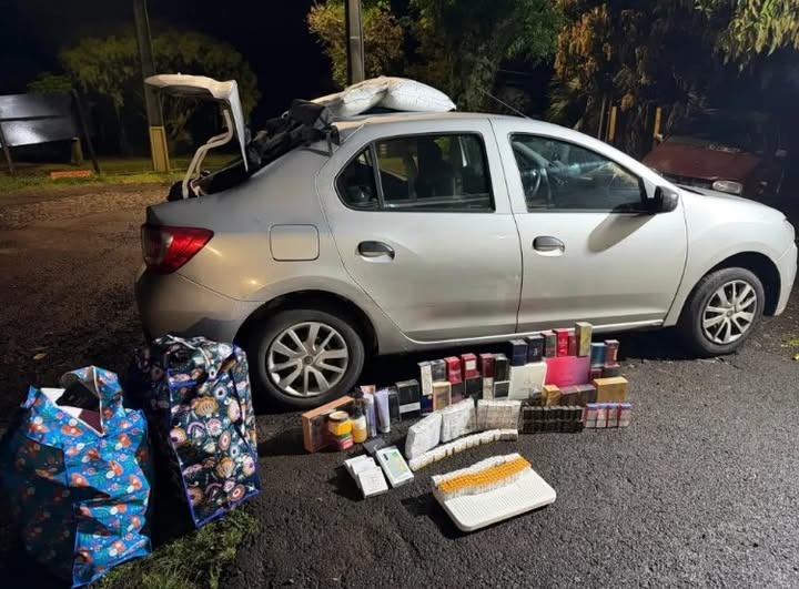 Os três ocupantes do veículo foram presos e encaminhados, juntamente com os produtos apreendidos, para os procedimentos legais cabíveis.