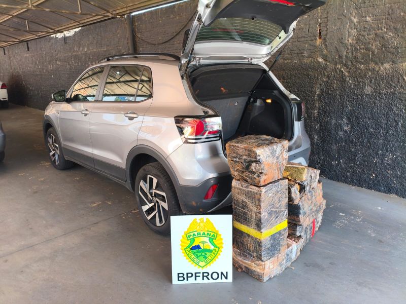 Durante patrulhamento, a equipe policial abordou um veículo VW T-Cross. Em vistoria no automóvel, os policiais localizaram uma grande quantidade de drogas no porta-malas, totalizando 120,550 quilos de entorpecentes. Na sequência, foi constatado que o veículo possuía registro de furto/roubo na cidade de São José dos Pinhais (PR).