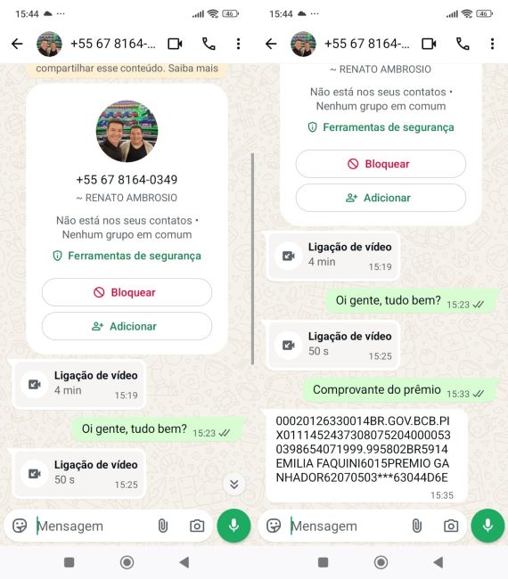 Segundo Luciana, o golpista realizou uma chamada afirmando ser Renato Ambrósio e disse que ela teria sido contemplada com um prêmio de R$ 10 mil. Durante a conversa, o suspeito solicitou que a vítima abrisse uma conta bancária para receber o suposto valor.