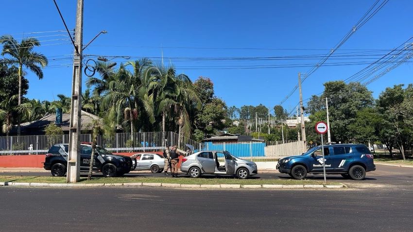 Por volta das 15h desta quarta-feira (04), um veículo Chevrolet Prisma, ano 2014, com placas de Sapucaia do Sul (RS), foi alvo de uma perseguição realizada pela Receita Federal no centro de Capitão Leônidas Marques.