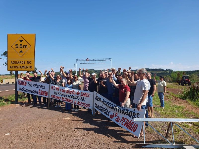 Moradores de Santa Lúcia, Capitão Leônidas Marques e Lindoeste realizaram uma manifestação pacífica na manhã de domingo (22), no trecho da BR-163, na entrada da localidade de Barrinha, nas proximidades da nova praça de pedágio, no sentido Sul/Norte. A mobilização teve início por volta das 9h e reuniu famílias, lideranças políticas e moradores da região contrários ao início da cobrança.