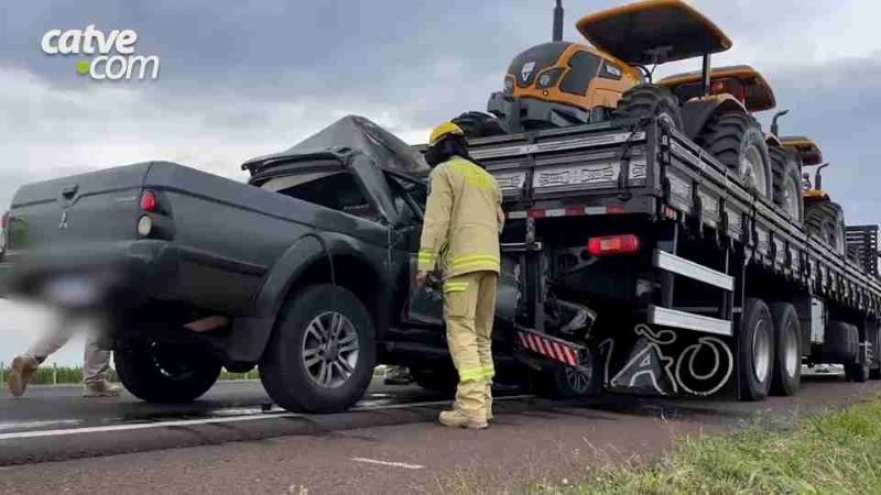A vítima dirigia uma caminhonete L200 que bateu com força na traseira de um caminhão que transportava tratores. Com o impacto, a parte dianteira da caminhonete ficou completamente destruída e o veículo acabou preso na traseira do caminhão.