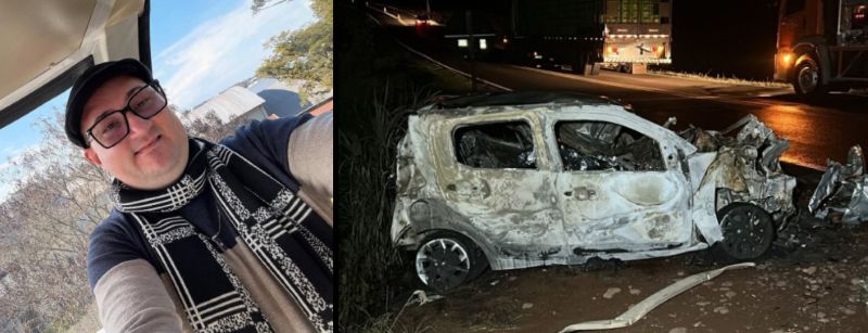Com o forte impacto da batida, o veículo Mobi pegou fogo. O condutor, identificado posteriormente como o professor Fernando Bergamin, não resistiu aos ferimentos e entrou em óbito ainda no local.