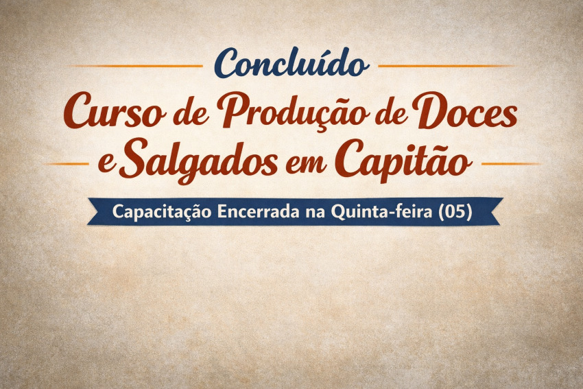 Na quinta-feira (05), foi encerrado o Curso de produção de Doces e Salgados em Capitã, mais uma importante ação de capacitação promovida por meio da parceria entre a Administração Municipal, a Secretaria de Desenvolvimento Econômico e Renda e o Senai.
