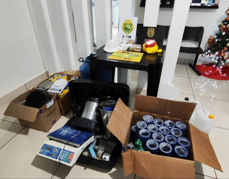 Outro imóvel, em Boa Vista da Aparecida, funcionava como um laboratório clandestino de refino de cocaína, onde o entorpecente era misturado, prensado e preparado para distribuição.