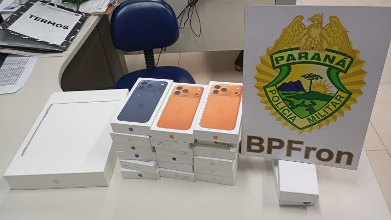 Durante a ação, a equipe policial abordou um ônibus interestadual. Em vistoria às bagagens de uma passageira, de 35 anos, foram localizados 18 aparelhos celulares iPhone, um MacBook e dois smartwatches, todos sem comprovação fiscal.