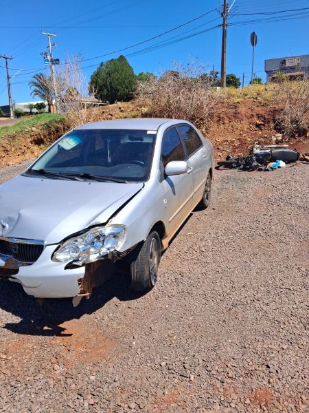 Um acidente de trânsito envolvendo um carro e uma motocicleta foi registrado na manhã de segunda-feira (30), por volta das 11h20, no cruzamento da Avenida Tancredo de Almeida Neves com a Rua Goitacá, em Boa Vista da Aparecida.